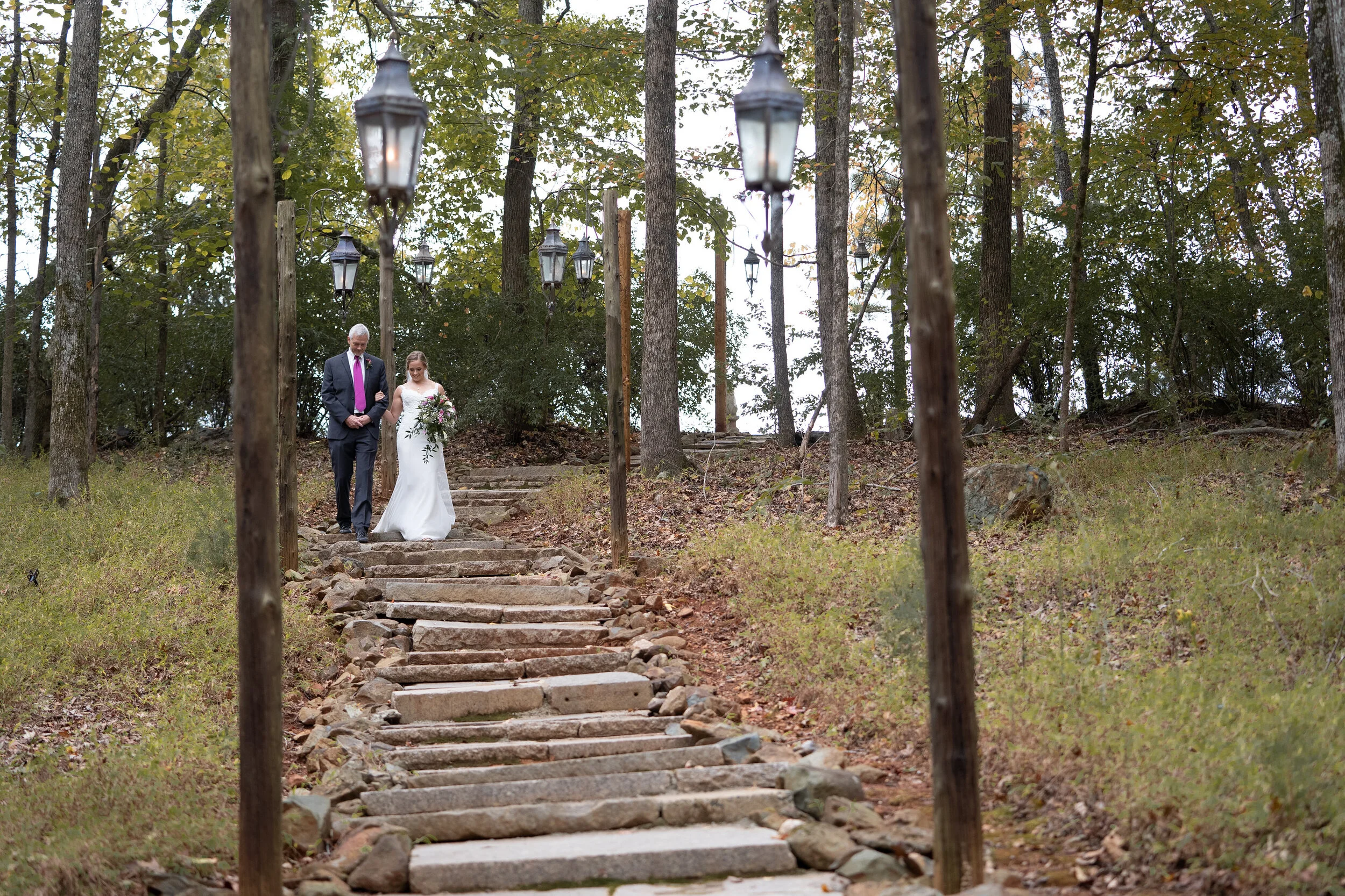 Everything about Katelyn and Kenneth’s wedding day was lovely. The rustic North Carolina scenery at the Het Landhuis barn set the tone for a relaxed family celebration. The venue is located along a quiet country road with rolling hills, set near a glistening pond that becomes the background for the canopy-covered altar. Het Landhuis is full of Old World charm with intricate ironwork decor and the ambient lighting of chandeliers, candlelight, and the moon. Katelyn and Kenneth have an easy chemistry together and a gentle respect for each other that made their wedding day a perfect experience for everyone.